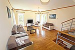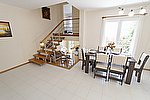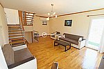Açık plan oturma, yemek odası ve mutfak bölümünden oluşur.